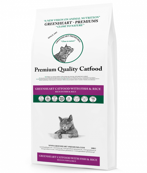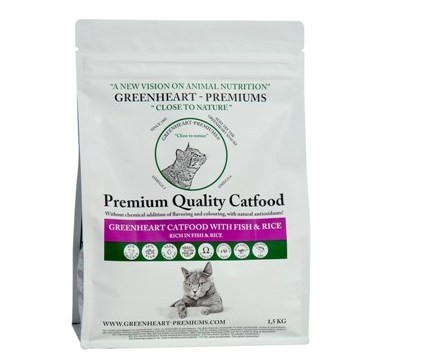 Recomendado para: Gatos adultos de cualquier raza. Libre de gluten de trigo. Gracias a su composición especial, esta receta es particularmente adecuada para animales sensibles a la nutrición. Con las cantidades ideales de calcio, sodio, fósforo y taurina, Greenheart Fish & Rice proporciona una base saludable para la vida saludable del gato en todas las razas.