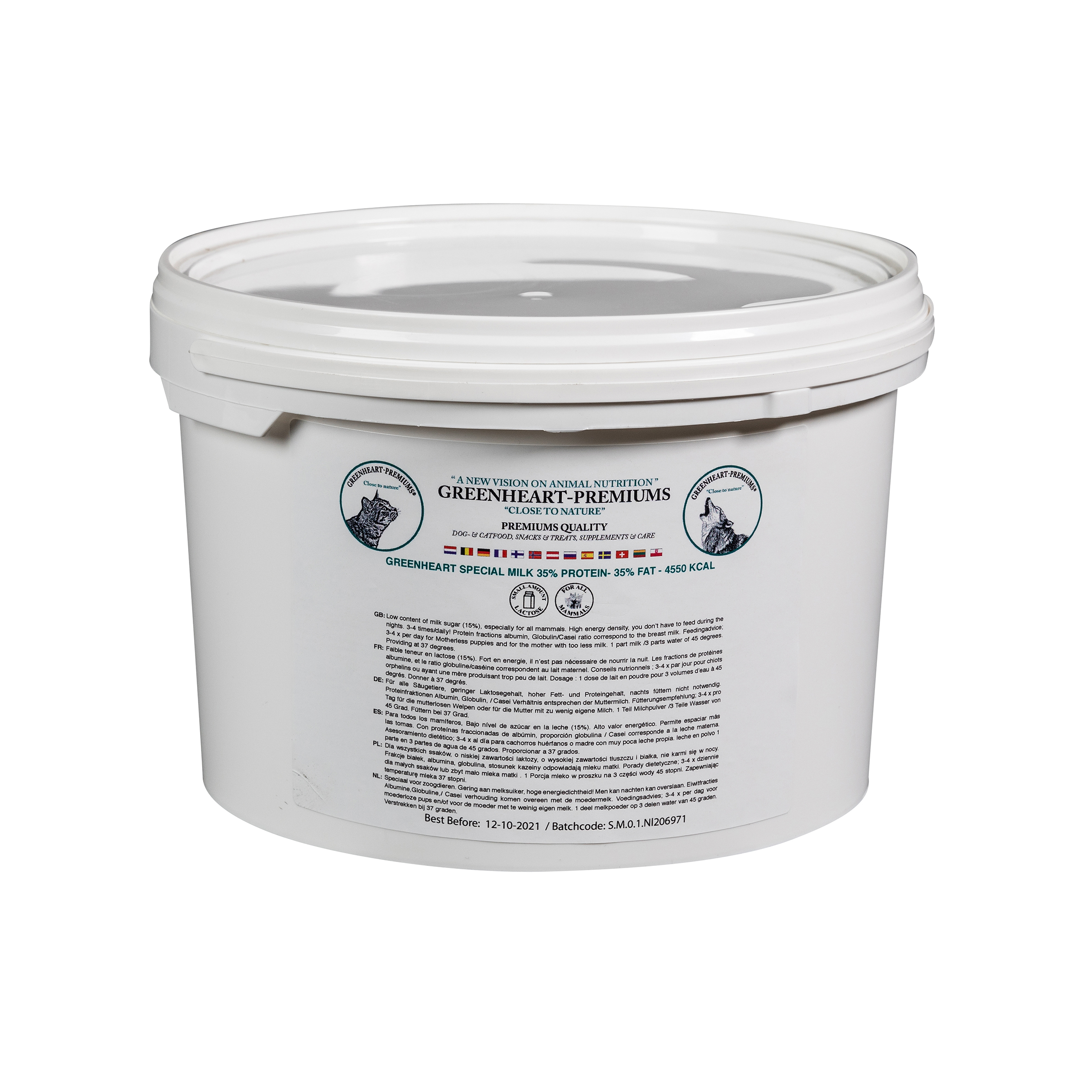 Greenheart Special Milk debe proveerse desde el primer día de vida del cachorro hasta su transición a comida sólida. Infórmese con su criador. Para preparar Greenheart Special Milk, debe primero hervir agua, dejarla enfriar aproximadamente hasta 45ºC. Agregar luego la leche en polvo en la cantidad indicada (1 parte / 3 de agua). Proporcionar al cachorro a unos 37º para imitar la ingesta de leche natural.